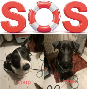 GROS SOS Besoin de 2 familles d'accueil ou d'adoption avant le 1er avril ! Pour Tiloup (Mâle entier. 4 ans. Très câlin. Petite taille.) et pour Ulysse (femelle non stérilisée. 3 ans. Border croisée. Câline. Joyeuse).